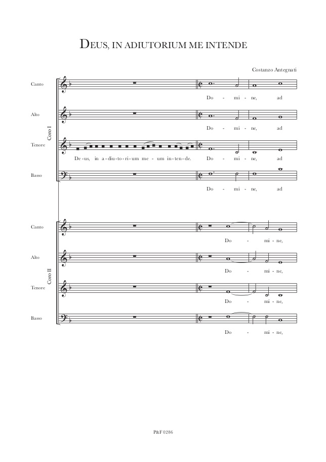 I salmi contenuti nella presente pubblicazione furono editi originariamente in parti staccate, in otto fascicoli. Molto interessante è la dedica alla priora e alle monache del Convento di San Vittore a Meda, cittadina poco distante da Monza. Questo luogo è citato anche nell’elenco riportato nell’Arte organica del 1608: Costanzo precisa che gli Antegnati avevano costruito in quel monastero ben due strumenti.